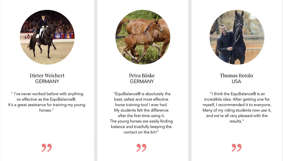 We hope that our efforts in creating the EquiBalance® System will enable a growing number of riders and horses to experience the benefits that our method offers. The purpose of EquiBalance® is to prevent discomfort, confusion, or the potential development of injury in horses that often result from the improper use or inefficiency of other equipment.